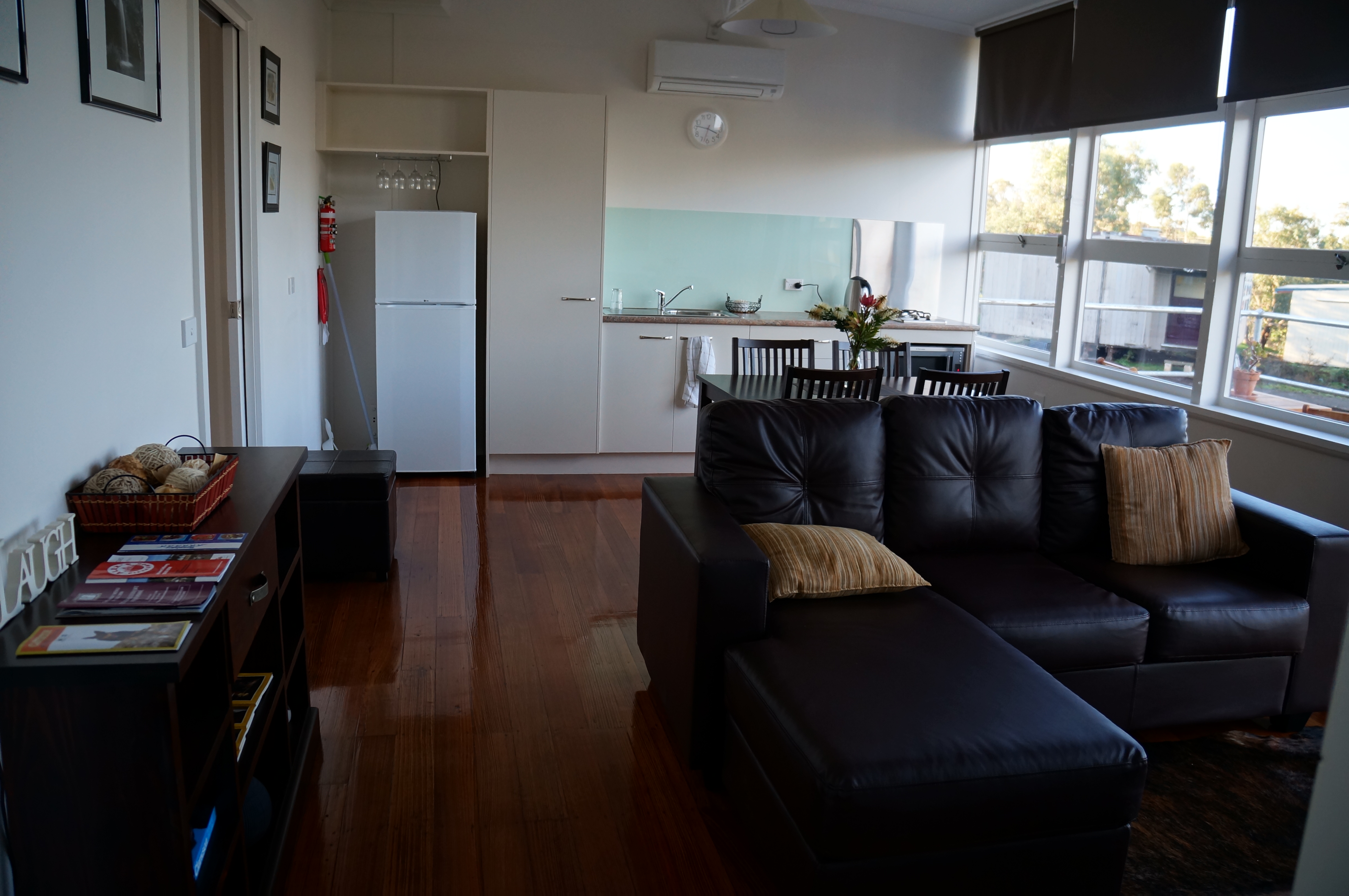 When we set out to establish our accommodation business Harmony at Tower Hill in South West Victoria we wanted to create a setting that was stylish, elegant and simple. Our objective was to have our clients accommodated in a relaxing and comfortable self-contained unit with all the luxurious appointments that would make their stay a pleasure. We settled on a full kitchen in a straight line design and had no hesitation in choosing Innovative Splashbacks.